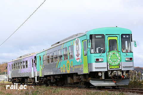 12月23日(土)は定期列車にフラワ1985-1が充当され,フラワ1985-1+フラワ2000-2の編成でサンタ列車が走りました。