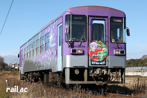 2022年は12月10日から25日までの土曜日・日曜日のみに4往復ずつ(北条町発10:06・11:09・13:09・14:09)のサンタ列車が運行されました。 この年は,2020年に完成した法華口駅行違い設備を活用して,定期列車とは別にサンタ列車として単独運転となっています。