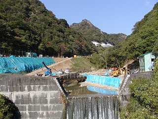 | A-菊水山駅付近旧線 | B-菊水山側旧線跡(写真左側)とダム工事の様子 |